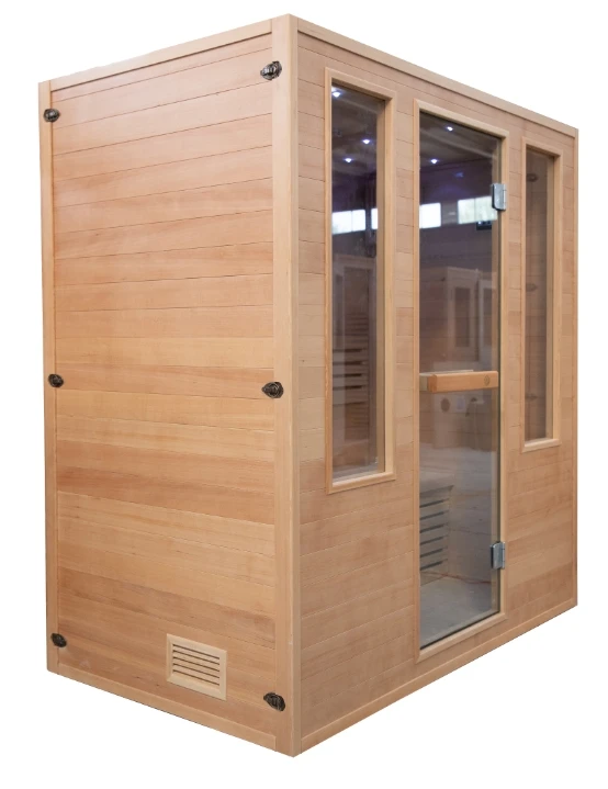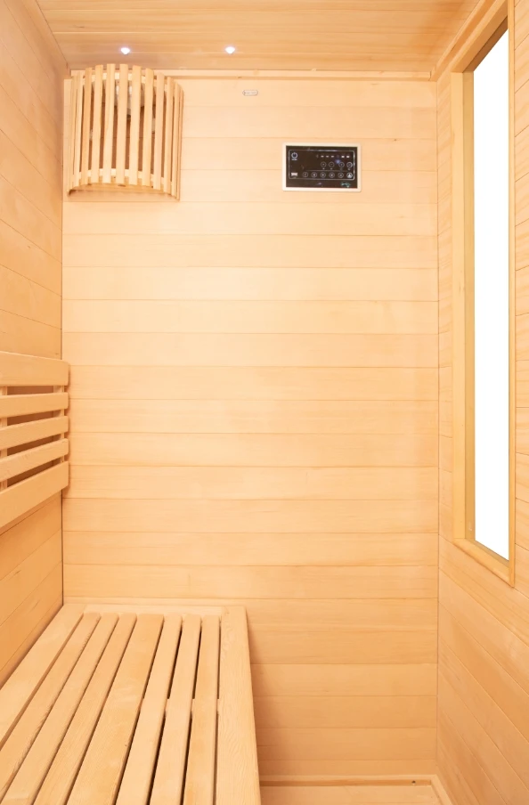 Vhealth presents the Factory Direct Hotsell Traditional Steam Sauna with Harvia Stove for 3 Person, a simple and reliable home sauna made for people who want real steam and a calm space to relax. This sauna fits three adults comfortably, with bench seats that are big enough for everyone to sit or lie down a little. The look is classic and the wood is warm and natural, so it feels like a real spa right in your house