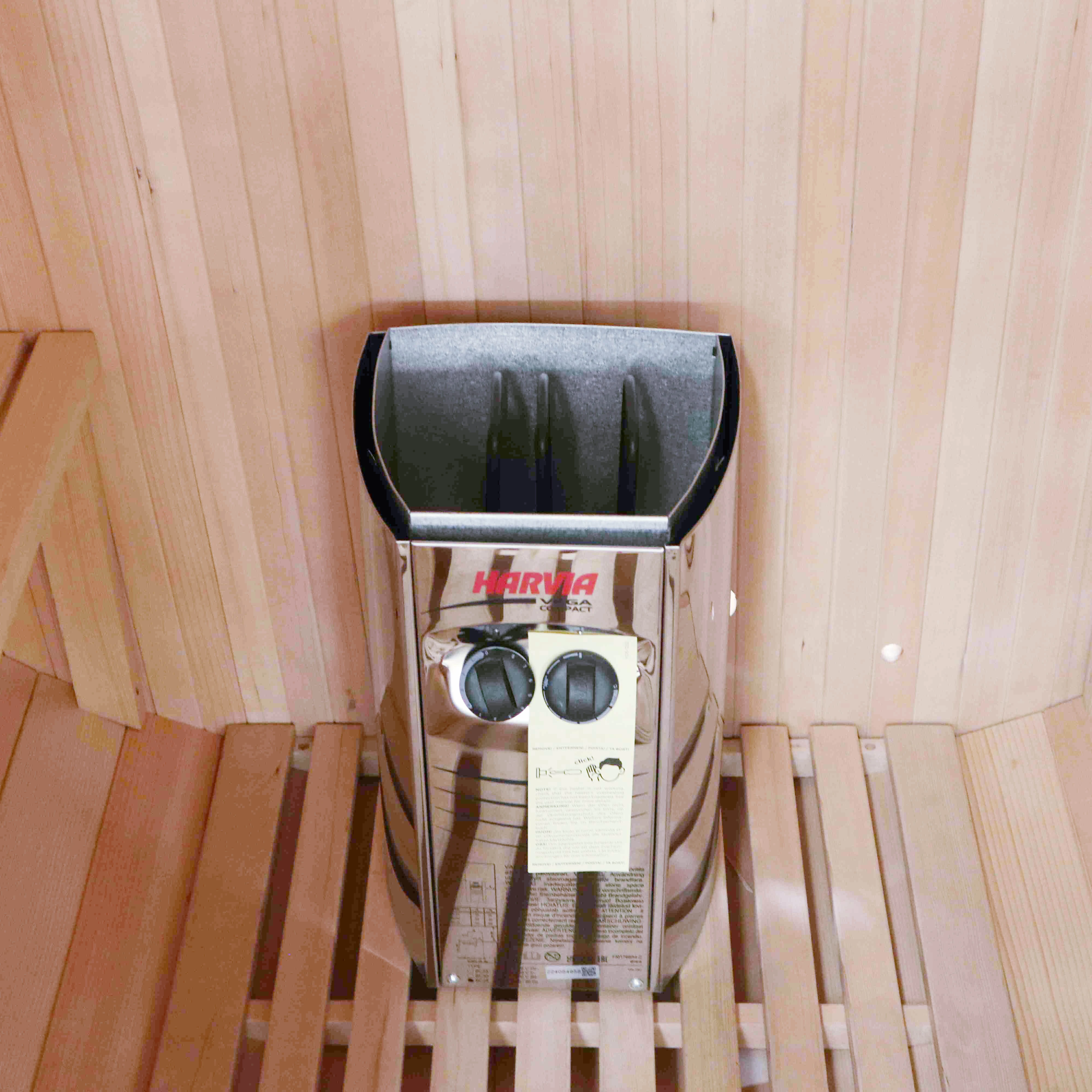 Equipped with a powerful Harvia Electric Heated Sauna Stove, this sauna heats up quickly and efficiently, providing you with the perfect sauna temperature in no time. The Harvia stove is known for its reliability and performance, making it the ideal choice for your outdoor sauna.