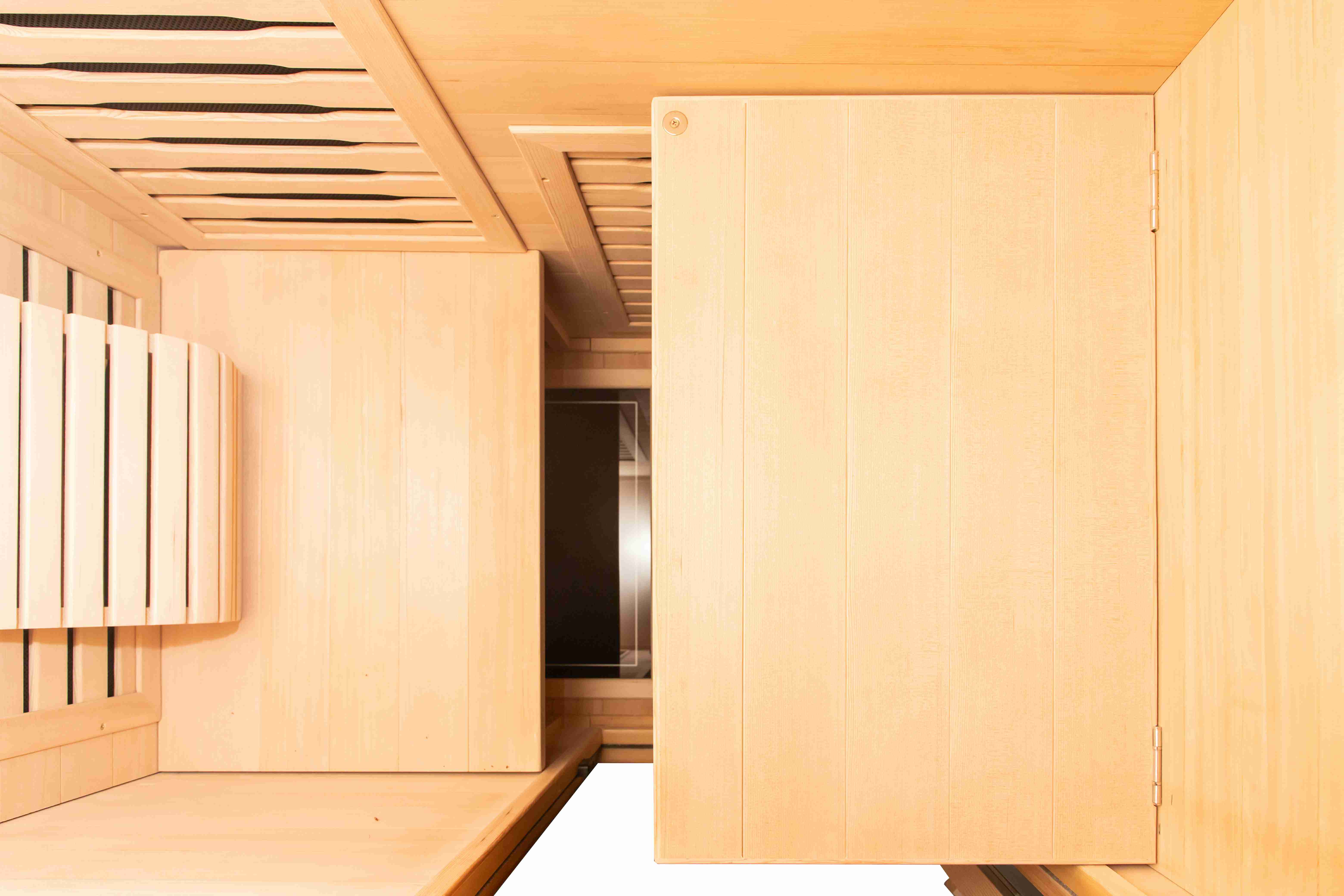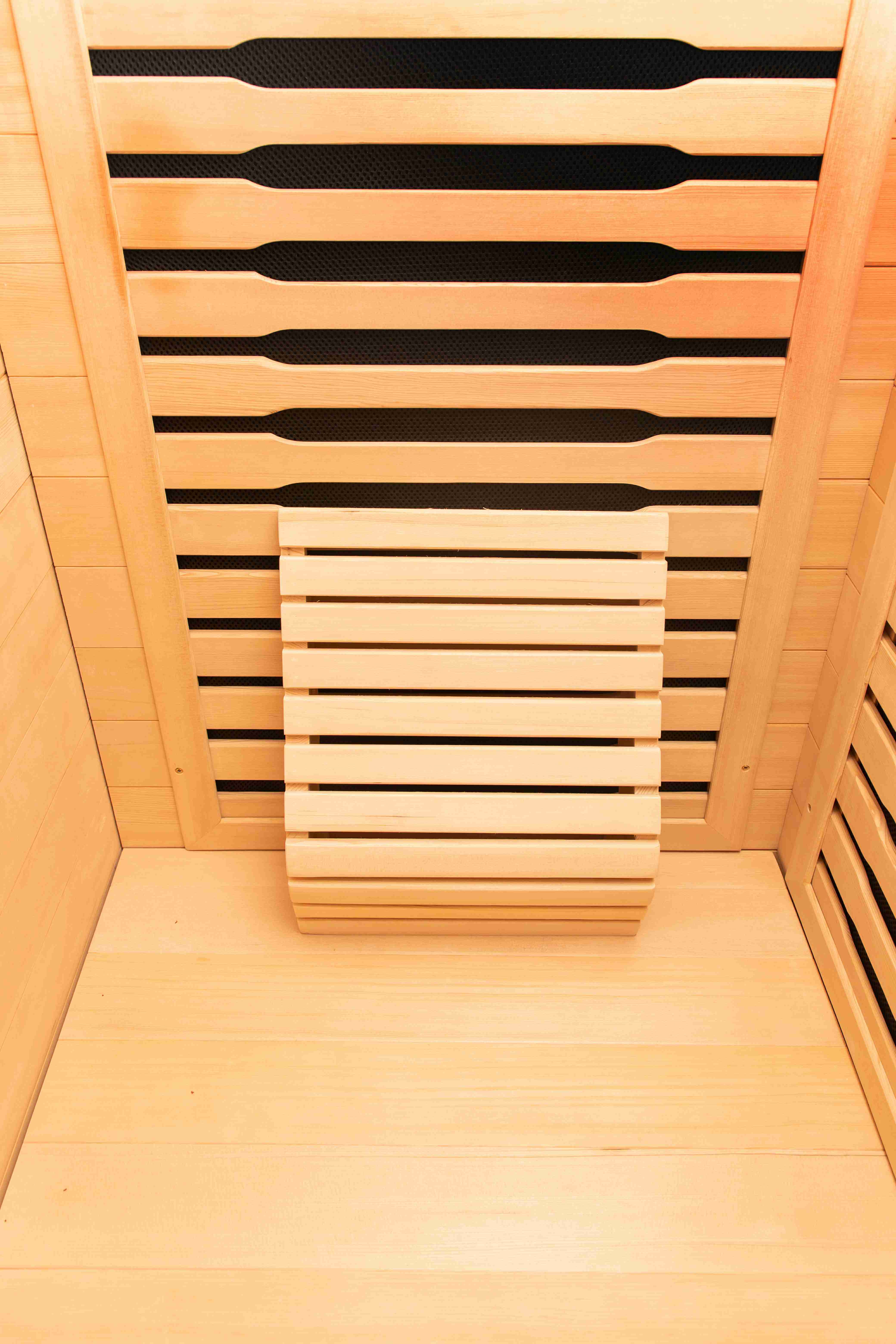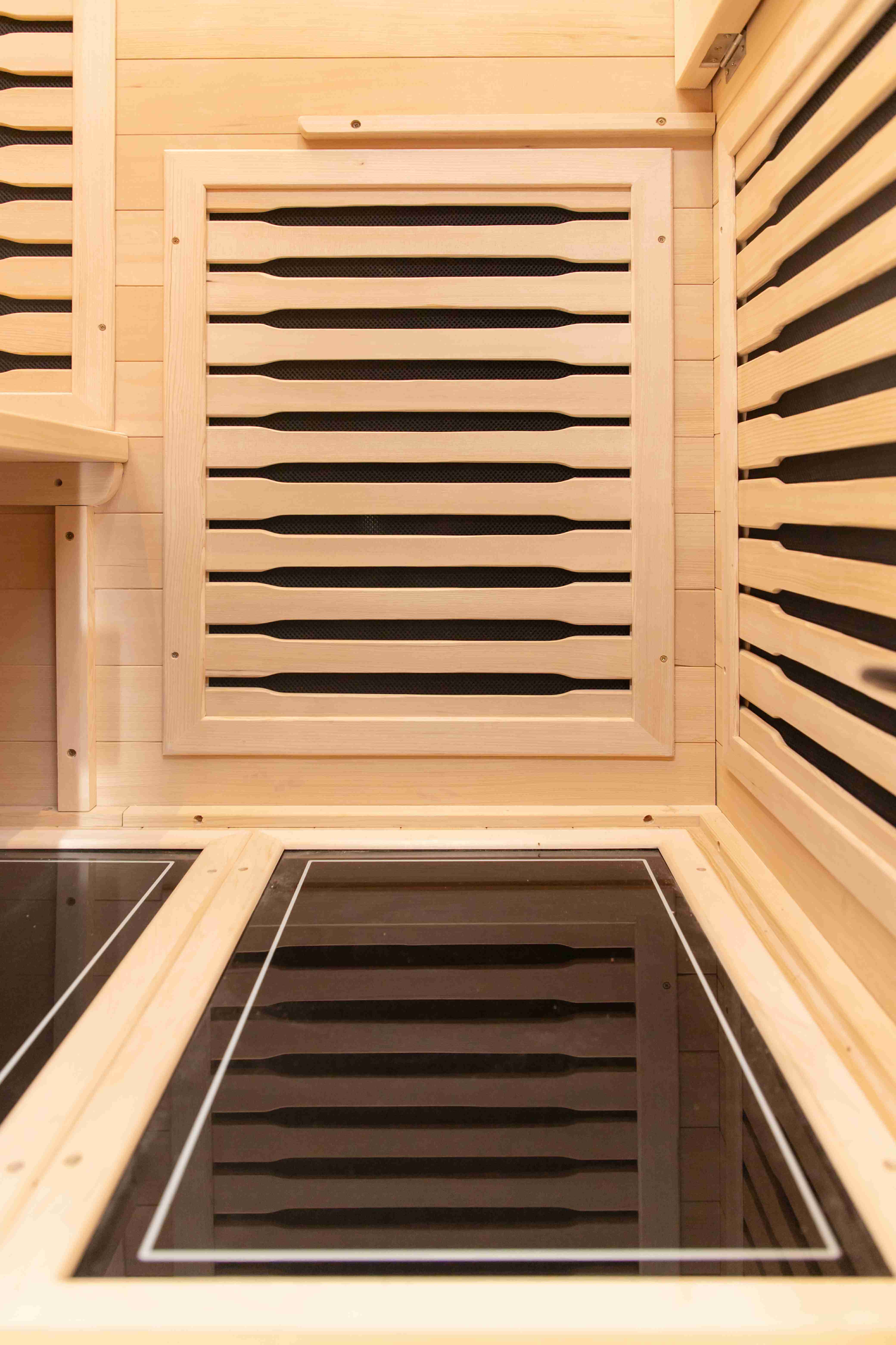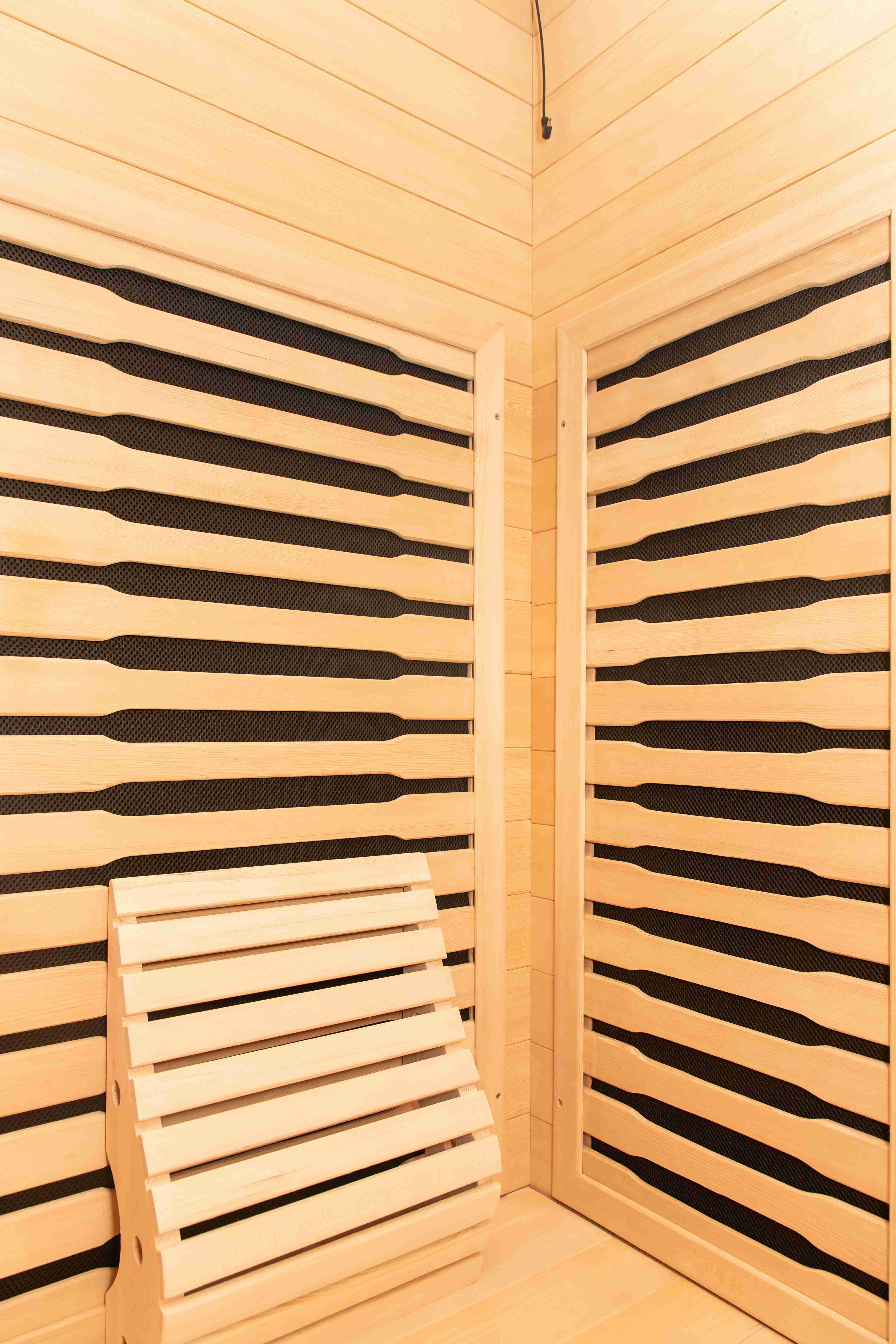 Além disso, a sauna foi feita levando em consideração seu conforto. Ela possui encostos ergonômicos que oferecem mais conforto enquanto você relaxa. A iluminação LED na sauna cria uma atmosfera serena.