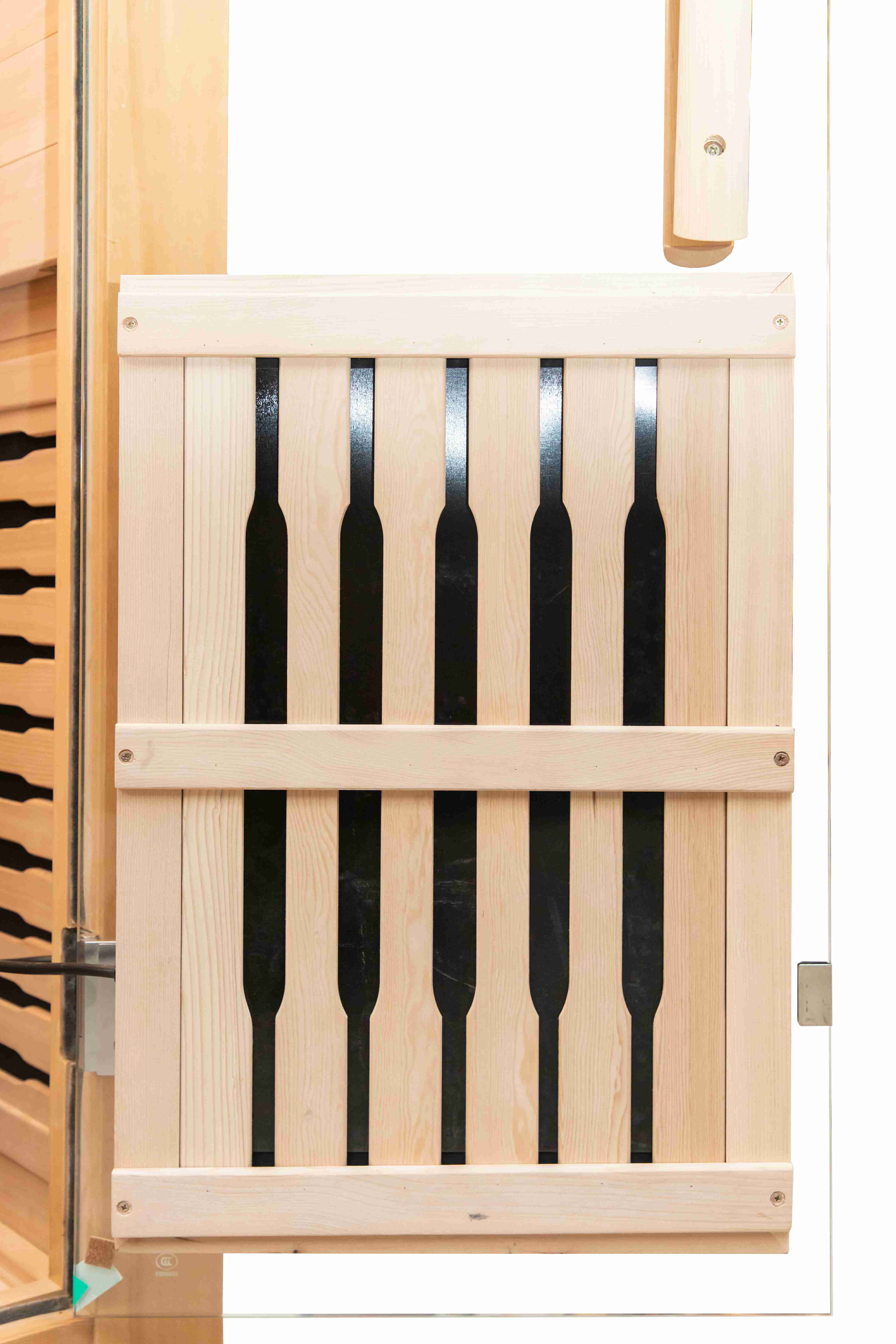 O recurso mais importante desta sauna são seus painéis de privacidade. Você pode colocá-los nos lados e na parte traseira da sauna, permitindo que você aproveite sua sessão de sauna sem interrupções. Os painéis de privacidade também adicionam um nível extra de isolamento, significando que menos energia é necessária para manter a sauna aquecida.