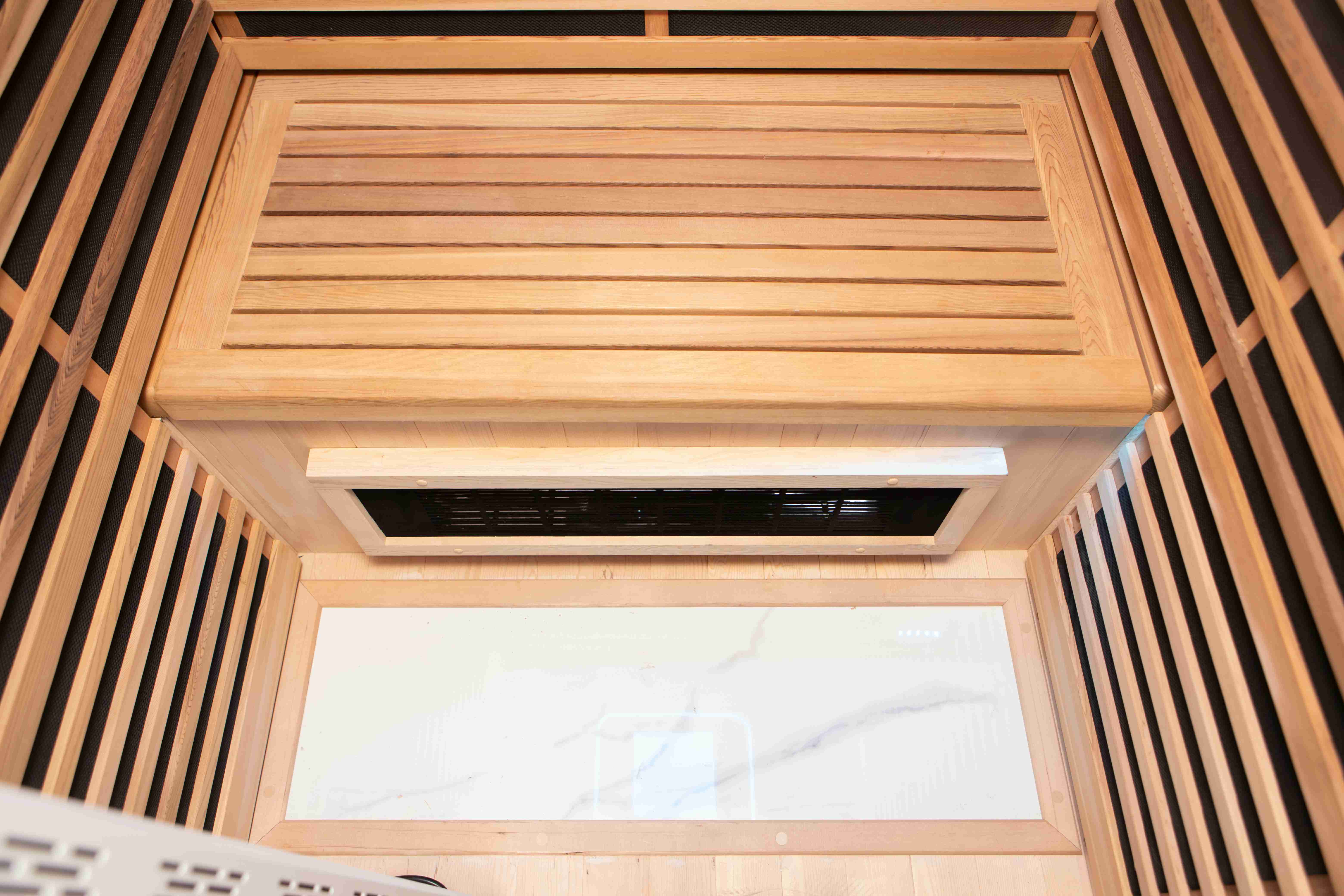 6/8мм закалённое стекло, создающее ощущение открытости внутри сауны |